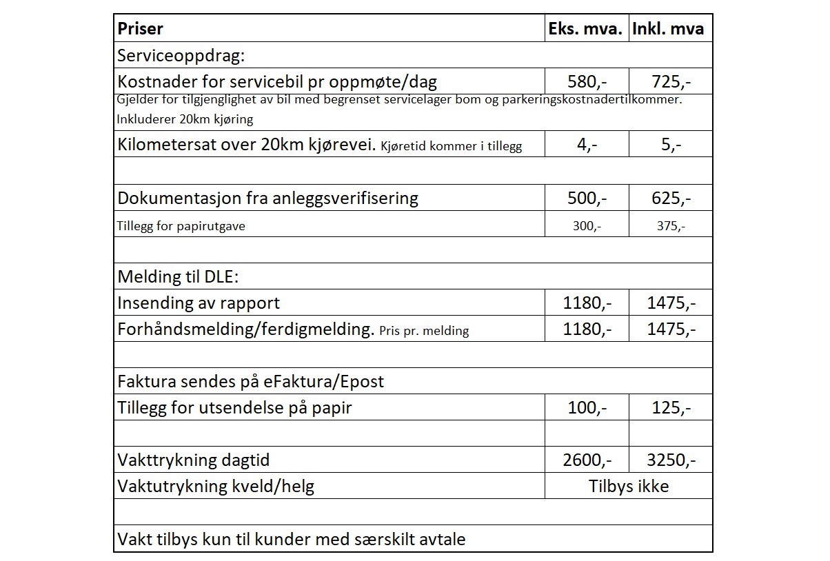 Timepris er i de tilfellene hvor kunden selv holder materiell kr. 1 460,- eks. mva/1 825,- inkl. mva.